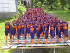 During my visit to Shipyard Brewing Company, in Portland, I saw the coolest picture hanging on the wall behind the checkout counter. It was a picture of the Pumpkinhead taps drying after being freshly painted. So, I checked with our friends at Shipyard and they allowed us to share this picture: